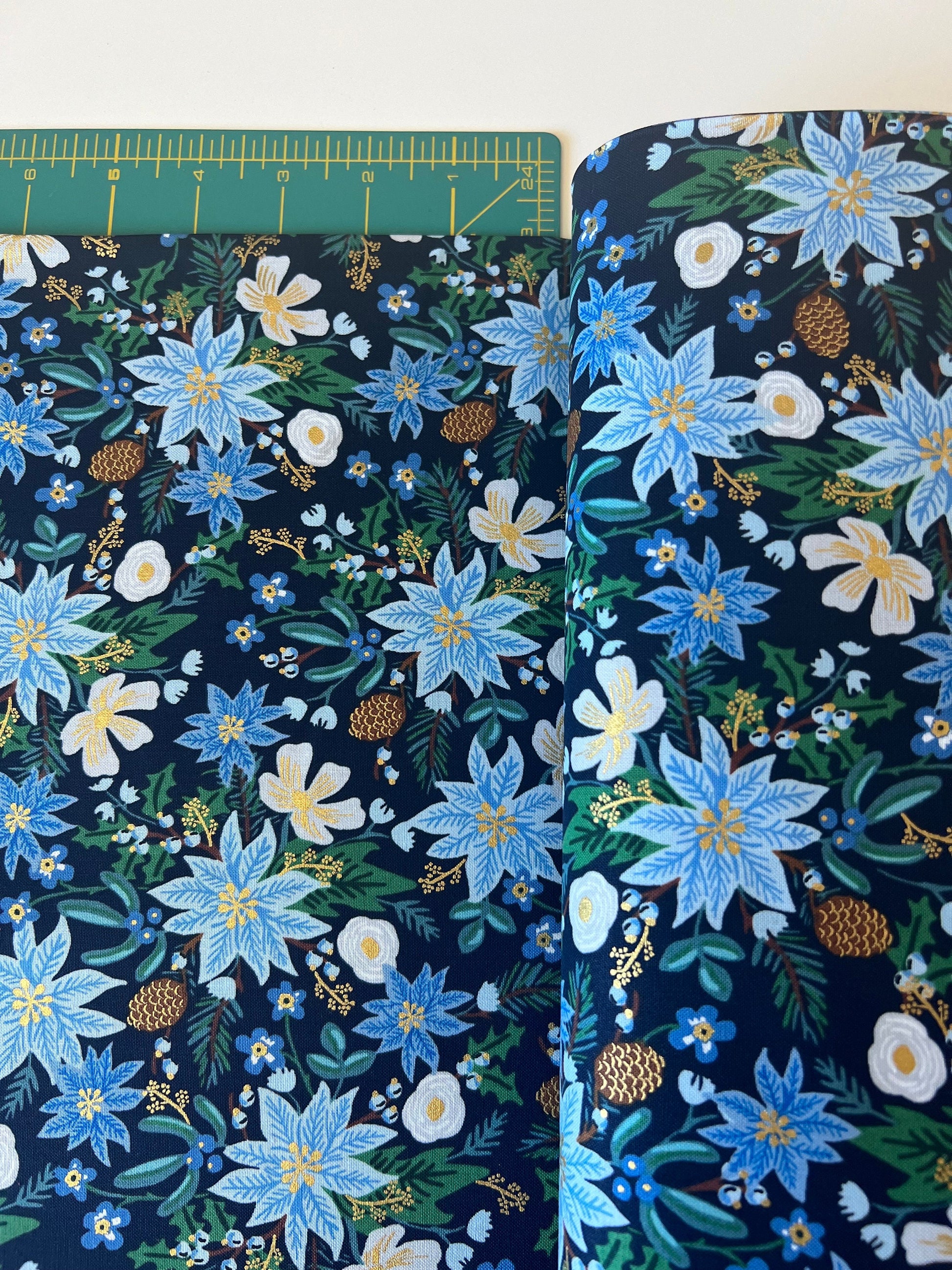 rifle-paper-co-christmas-cotton-fabric-navy-poinsettia-bouquet