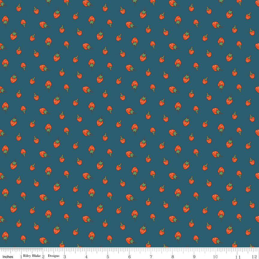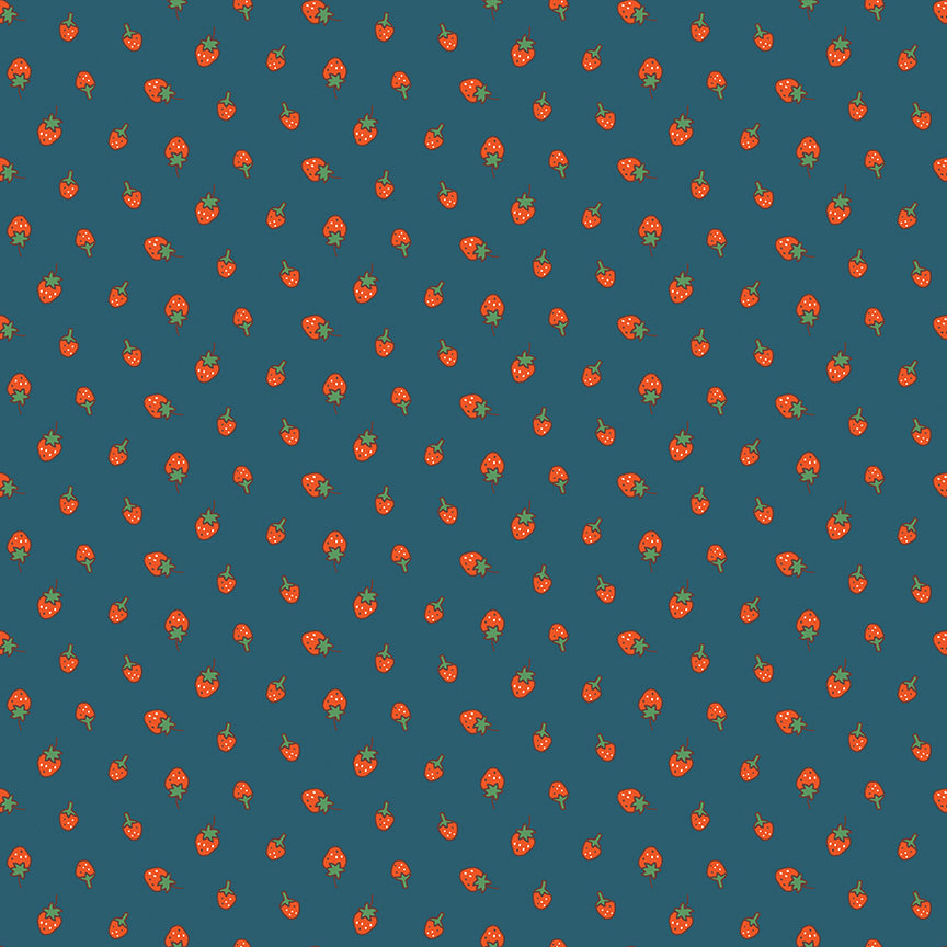 Serendipity 2 by Minki Kim for Riley Blake Designs is great for quilting, apparel and home decor. This print features tossed strawberries.