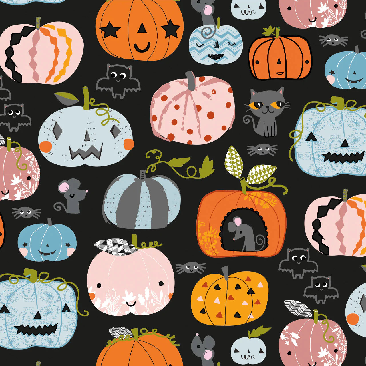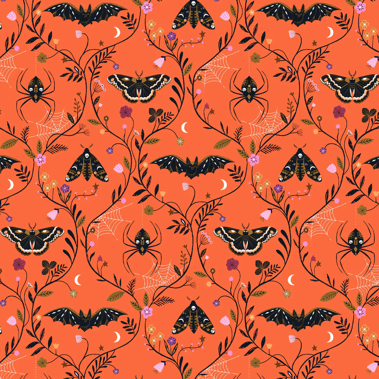 Bats, spiders and moths on orange.